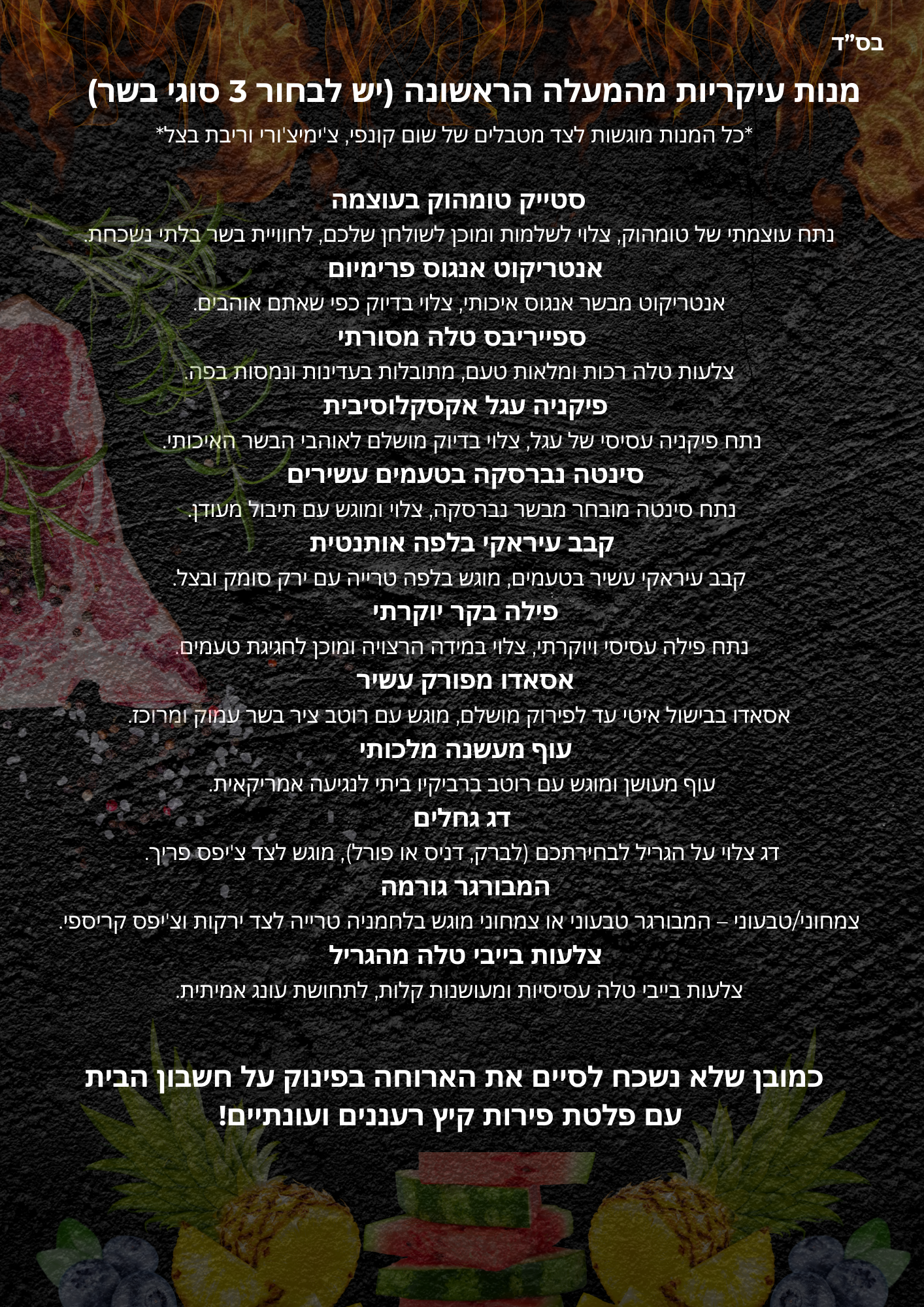 כל הבשרים שלנו כשרים, תחת פיקוח רבני מחמיר, יש אפשרות לבשר חלק/רבנות
